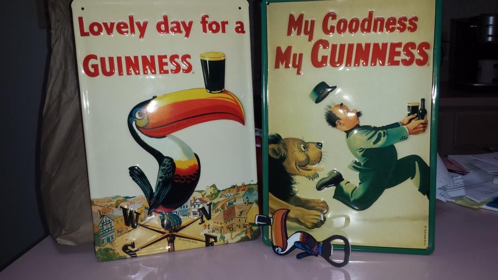 For the man cave, Two Guinness signs and a bottle opener.