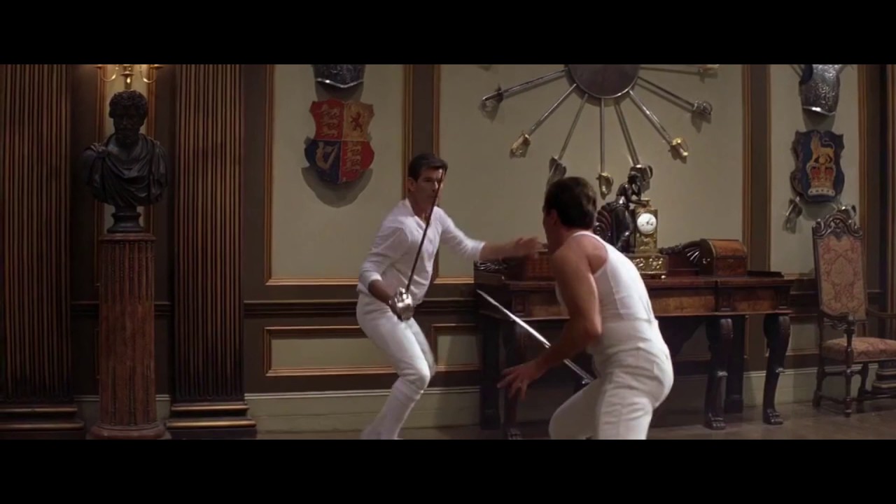 I know that the later Bonds can’t compare with the earlier ones, and that people seem to have a special kind of hate for Die Another Day, the last Pierce Brosnan Bond film (and the last “classic” Bond before the Daniel Craig reboot), but I have to admit that I love the swordfighting battle between Bond and Graves, in which they use just about every type of sword, it seems.