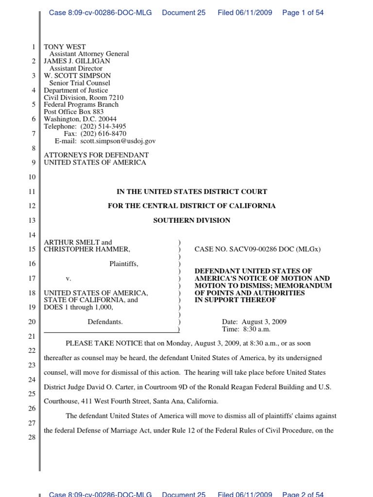 That’s not true. They said the plaintiff had no standing, but went on to argue the law is Constitutional. Those arguments start on page 22 of the document (page 32 in the document viewer in the link). The government says DOMA doesn’t violate the plaintiffs’ due process or equal protection under the Fifth Amendment, does not violate the right to privacy found in Griswold v. Connecticut, does not infringe on their freedom of speech, and does not violate the Ninth Amendment.