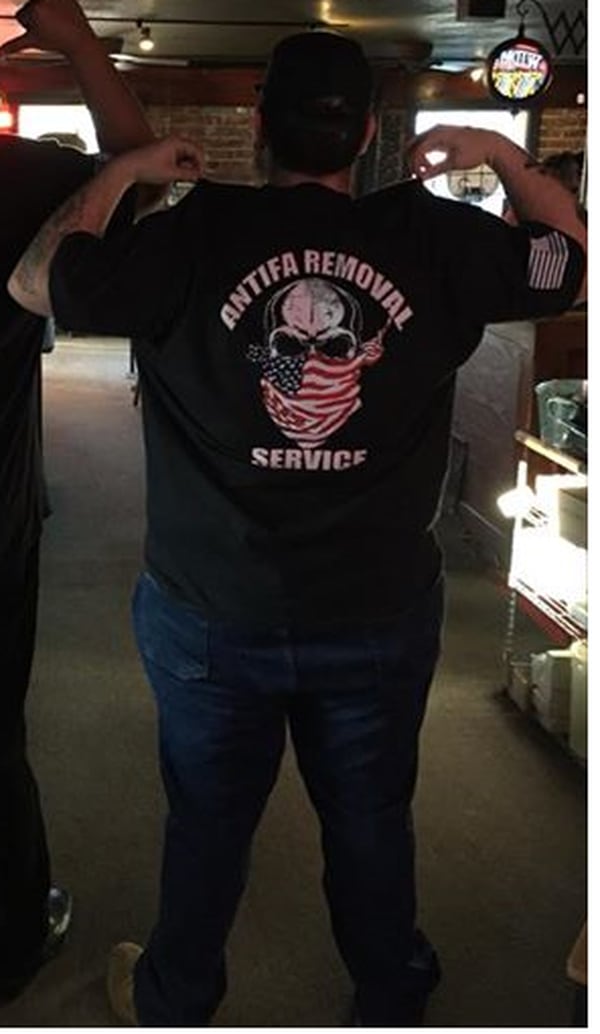After a poorly attended rally of about 60 to 70 people earlier in the day, which featured Alex Jones himself as a last-minute surprise guest, right-wing demonstrators took their signs, their message and a bullhorn to the Pecan Street Festival and began, as one organizer put it on Facebook, “trolling 6th” street. Soon after they arrived, Toese, Patriot Prayer leader Joey Gibson and others in the group began what appears in Shroyer’s video to be an animated discussion with three young men. According to commentary in the video, demonstrators were upset by their Obama hats, which Shroyer insisted they wore on purpose “just to trigger you,” and they also objected to one man’s sweatshirt, which featured the name and likeness of Dr. Martin Luther King, Jr.
