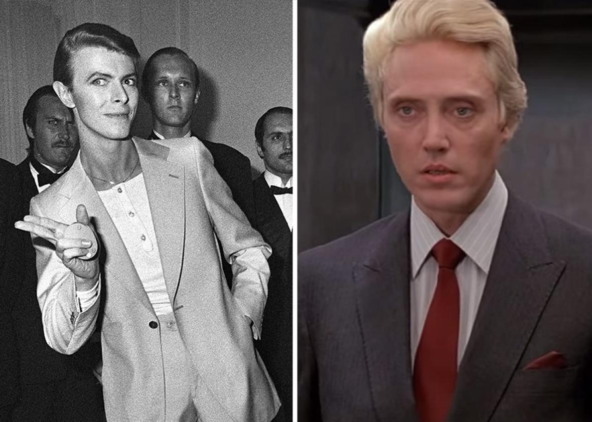 I dunno, David Bowie was offered the role but turned it down before it went to Walken. If you were basing a character off of Donald Trump, wig or not I don’t think David Bowie would be the actor you’d pick for that role. (Nor would Sting or Mick Jagger, others offered the role.)