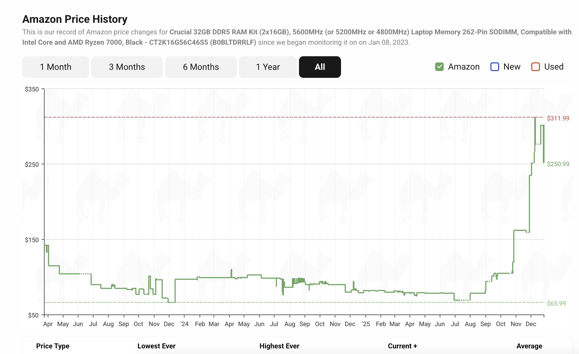 Hopefully your computer is old enough to use DDR4 memory, because it hasn’t gone through quite the explosion of DDR5 prices. At the moment, it looks like DDR5 is twice the cost of DDR4.