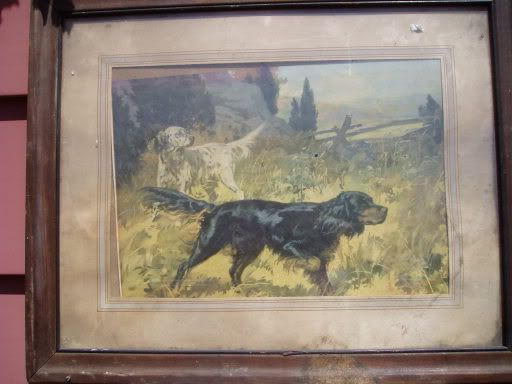 framed and matted print of an English Setter and GORDON SETTER on point !