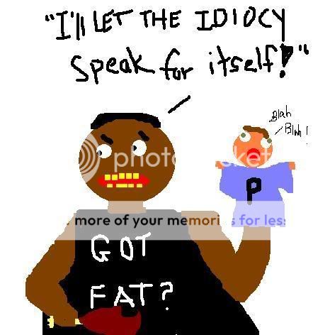 Hey, Nzinga, I thought you were supposed to be keeping out of my way. Needling me in the Pit is a fine way of doing that. I guess you’re still a sore loser, heh? Aah, well, we can’t all be really African (as much as some of us might really, really want to be). And look at the company your stalking of me is forcing you to keep - sure, really “classy” :dubious: