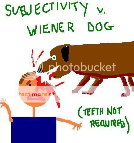 What? You want a cite for the objective world pervailing over Der Trihs’ subjective perceptions and internal thoughts. Duhhh. You scurried away when I pushed you on your idiotic stance, and now you come back to cower behind Princhester’s total retardation? You know, MrDibble, most people might start thinking you’re a snivelling cunt, if they didn’t know it already.