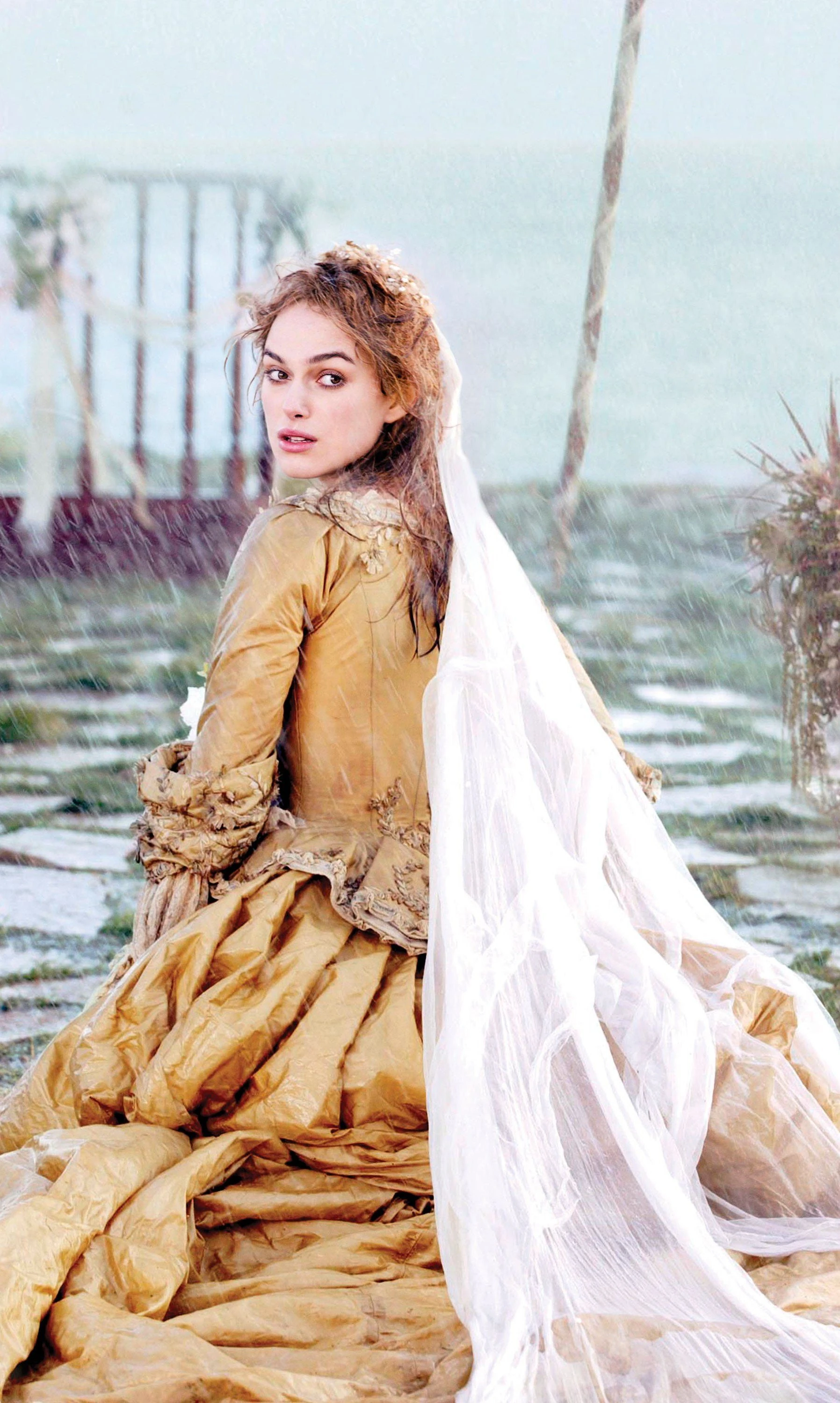 Were you rained upon and left groomless at your wedding? - Yes, Elizabeth Swann, in the second Pirates of the Caribbean movie: http://img3.wikia.nocookie.net/__cb20120302082341/pirates/images/1/15/Keira3.jpg
