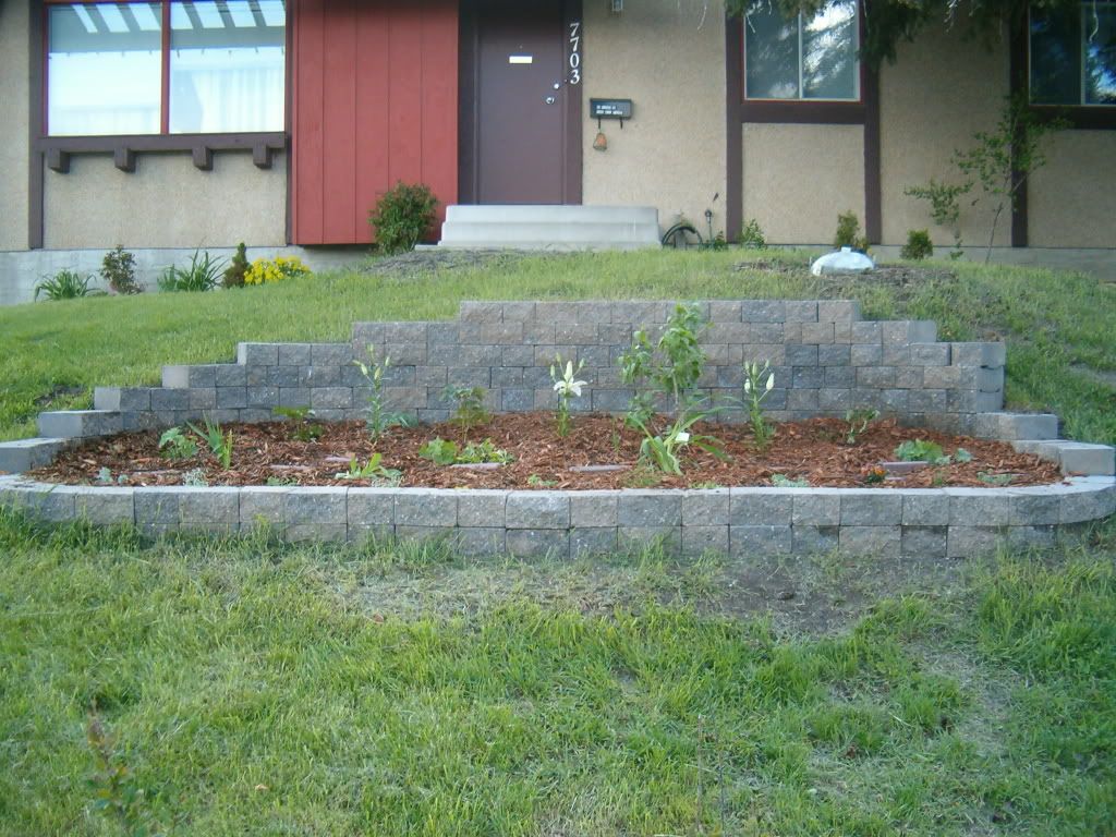 I planted a Wedgewood Blue lilac, yarrow, iris, double red peonies, white asiatic lilies, lady’s mantle, two different day lilies (one orange and one burgundy), burgundy blanket flower, cranesbill, two types of sedum, some red dianthus, some Snow In Summer (Cerastium tomentosum), some dwarf perennial potentillas, golden Creeping Jenny, a yellow ice plant, and a new variety of viola. I’ll probably be re-visiting the bed next summer or the summer after that and see if I’ve missed a colour or texture.