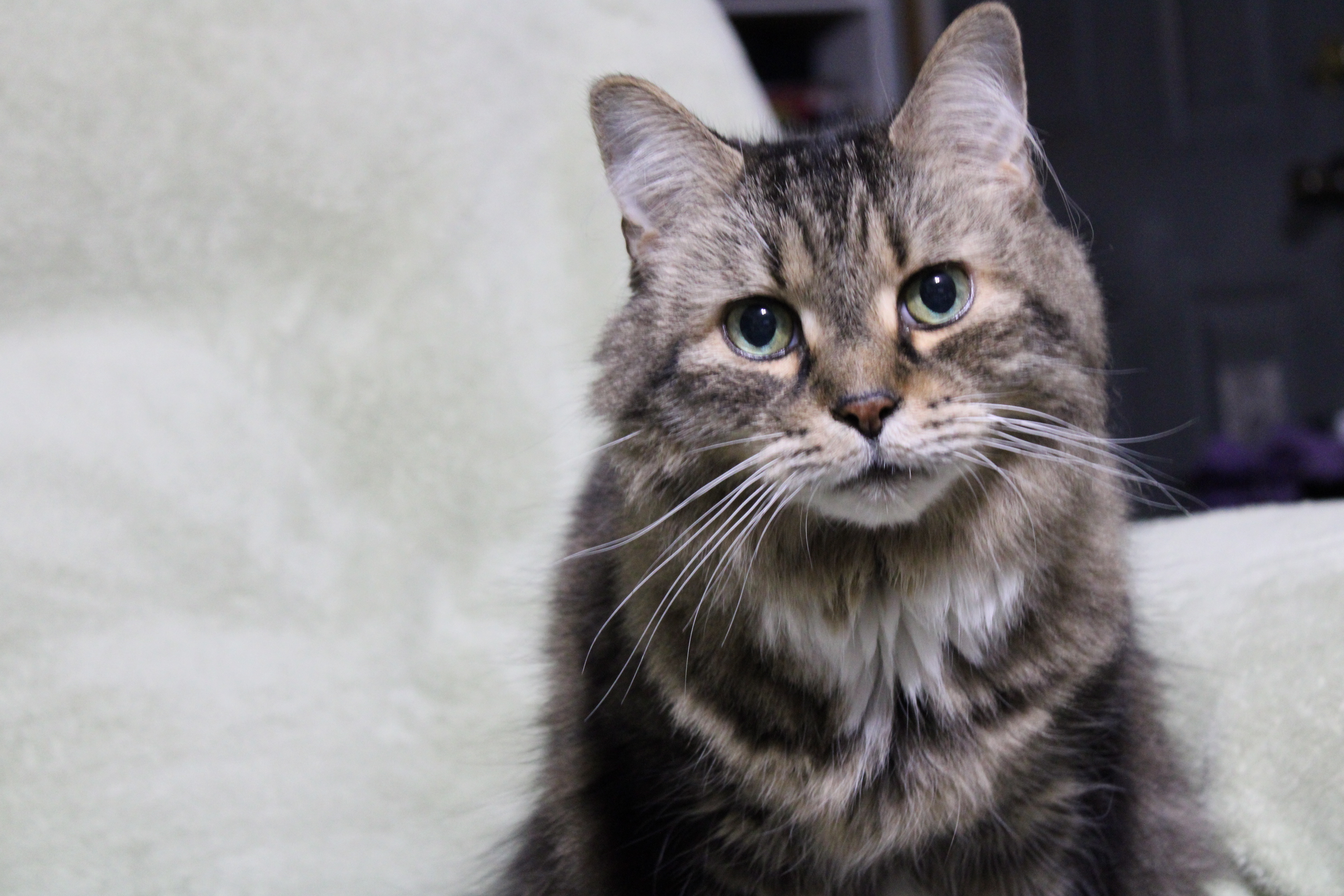 After Dad died he got clingier, and no wonder. For the first time in his life (or at least since my mom adopted him in 2006) he was alone all day while I was at work. I’d come home at mid-day a couple of times and found him curled up in Dad’s chair, listening to the radio I programed to play Dad’s favorite radio station while I was gone. I felt so bad about that and wanted to adopt him a buddy, but I wasn’t sure how he’d do with a new cat so I decided to put it off until the spring.