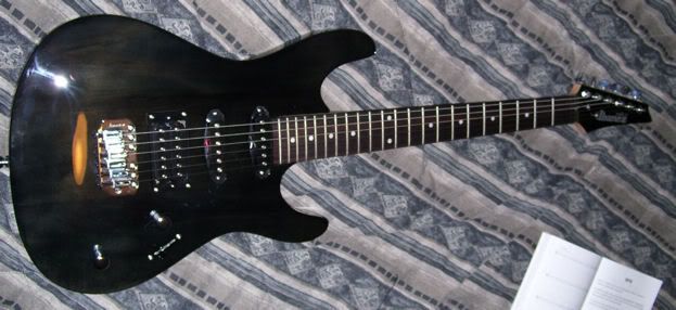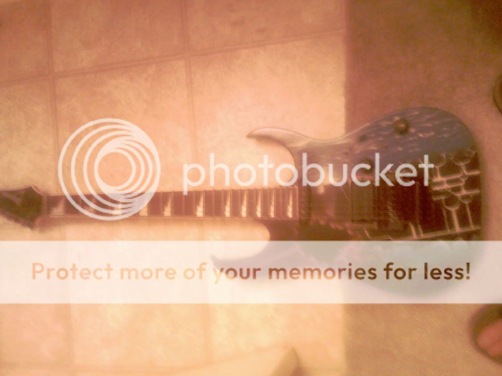 Guitar #3 : Ibanez “RAWK your face off” kind o’ guitar, unsurprisingly obtained when I was in high school. I remember the guy in the guitar shop making me “audition” on another guitar before he let me touch it. Supposedly, they made relatively few of this model with this particular paint job, so it would be worth some money, had it not suffered an extremely unfortunate break in it’s neck during an apartment move several years ago. Not that I could ever bear to sell it anyway…