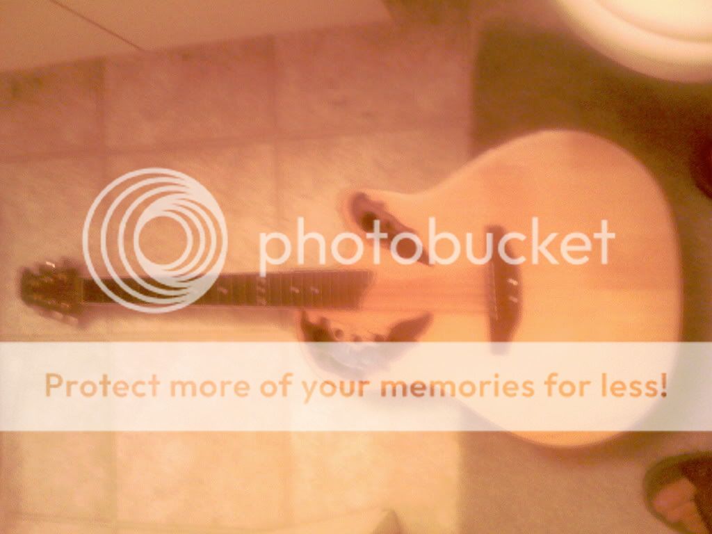 Guitar #4 : Ovation acoustic-electric. Absurdly light and feels almost like a toy, but has (had?) the best sound of almost any plugged in acoustic I have played. This guitar has travelled across the world with me, has broken completely in half mere minutes before a performance, and also has a big chunk missing from the headstock due to a foolish studio technician. Pretty much unplayable these days, but I still love it.