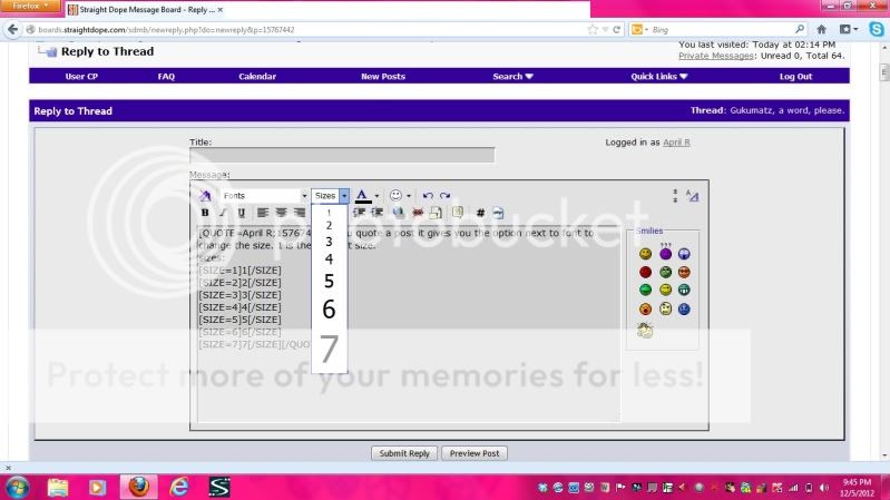if you quote a post it gives you the option next to font to change the size. 1 is the smallest size.