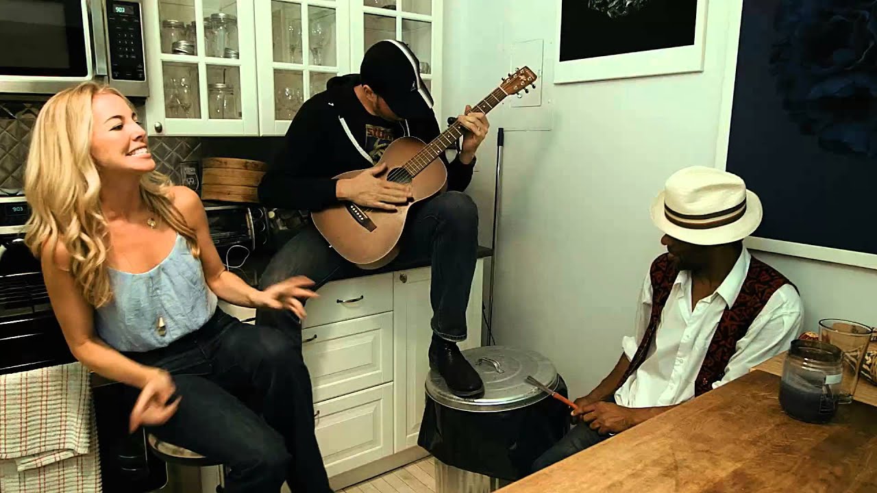 I’m blown away by Morgan James sitting in in a tiny kitchen with one guy strumming on a beat up guitar and another guy rapping on a garbage can: