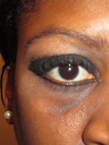 Okay, last thing about my stupid makeup. I bought some Rimmel liquid liner (thanks, D!) and some black eyeshadow, though nothing fancy because as you’ve probably guessed, I don’t do this shit very often, and will honestly never use black eyeshadow again. I started practicing layering the liner and shadow, and it definitely looks better than just trying to blend in a shitty pencil. So ignore the eyebrows; just working on the liner and shadow layering for now. Not the worst thing ever, but still not great. I could hear WhyNot yelling at me, “Girl, you better put some more liner on” (she probably doesn’t talk like that), so I told myself to go above the damn crease. Okay, so above the crease it is! We’re getting there. Still gotta work on tidying up the lines a little and layering more, but I think I got this.