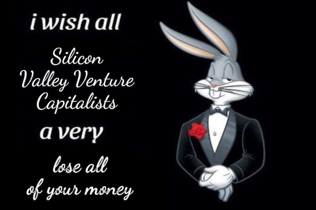 So you think it would be great if Silicon Valley VCs lose all their money? I take it you don’t want any more innovation out of Silicon Valley? That you’d like to shut off the flow of goods that come out of that place?