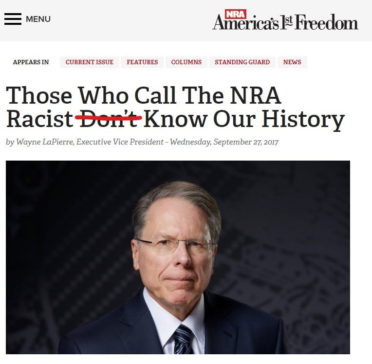 That’s hardly surprising given that American gun culture is largely driven by white fear of blacks. The NRA has a long history of using racist imagery and language to push guns.