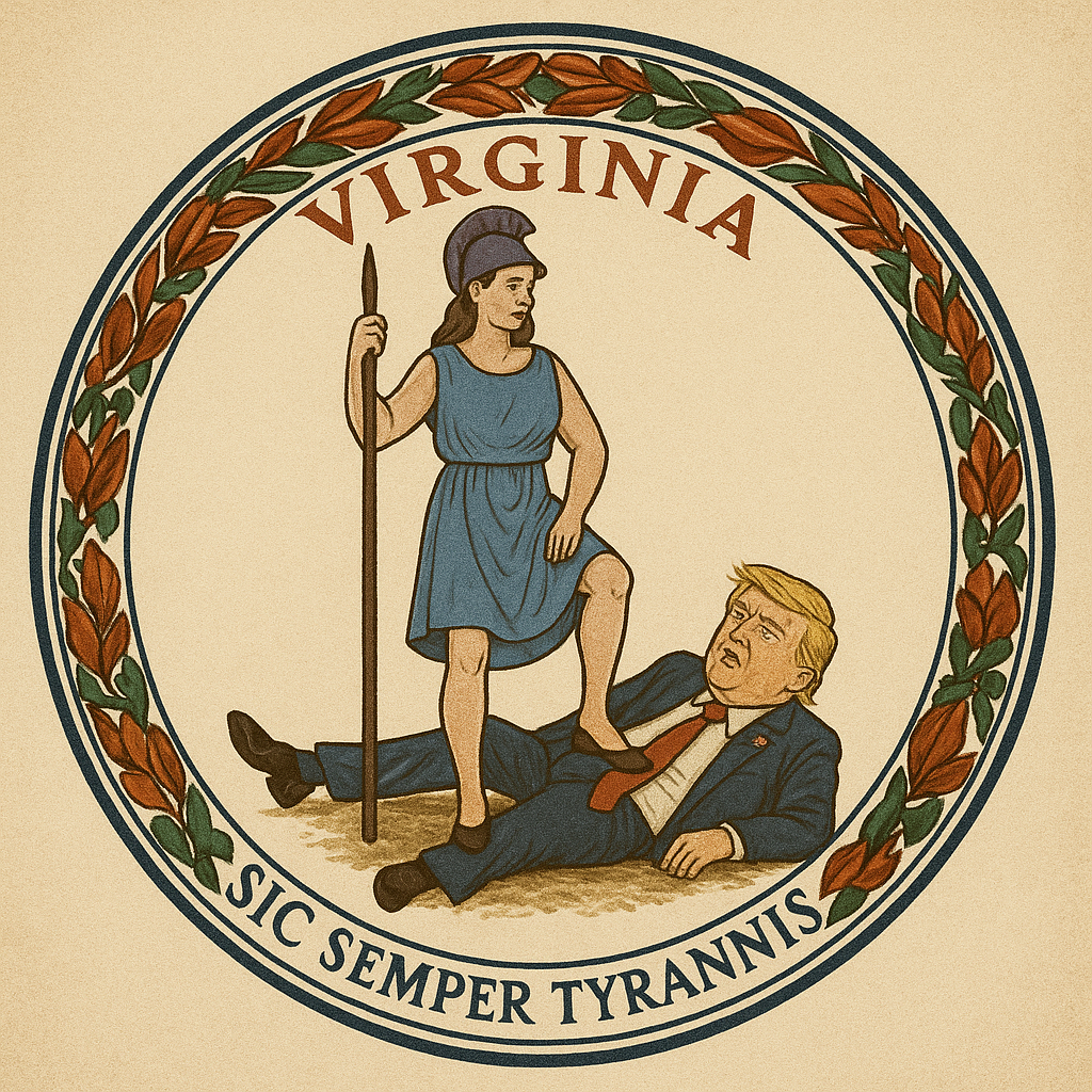 How about this version of the VA state seal. ChatGPT screwed up several times in my attempts to make this, the more violent versions closer to the original seal tended to get censored or came out crappy. And the censor absolutely tripped every time I tried to have it draw Virtus in her original clothing.