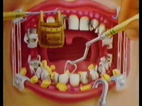 The one I’m thinking of shows the lower half of a man’s face. His mouth is held open with clamps. It can be easily seen that he has a LOT of gold fillings. Two hands enter the picture (presumably the hands of a dentist). The hands can be seen administering Novocaine shots into the gums, while the voice of the presumed dentist is speaking to the patient. The dentist leaves the room, and tells the patient that he will be back when the Novocaine has had a chance to take effect.