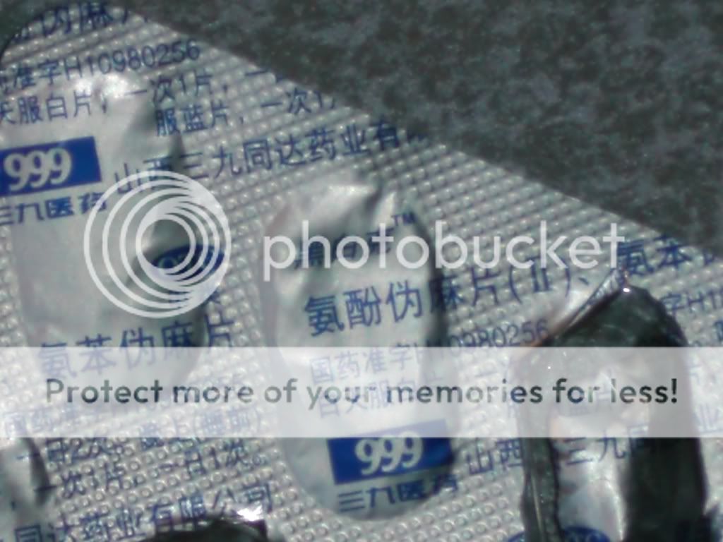 The other thing I got were tablets that come in the same kind of package they use for Dentyne Ice gum. It contains white and blue pills. I was told to take the white pill in the afternoon and a blue pill before I go to sleep. The only thing recognizable on the package are the numbers 999 inside of a rectangle. My boss also told me that she thinks the name of the product was black and white, from what she could translate that was written on the pack.