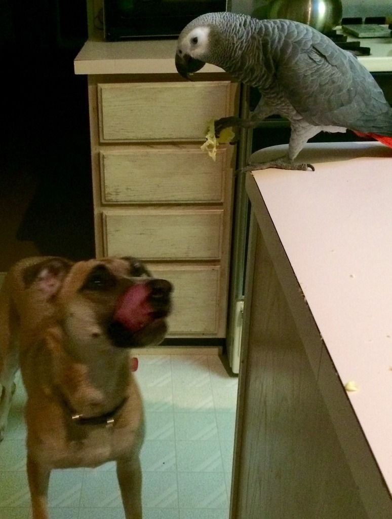 Our oldest dog, Ella, had a bout of pancreatitis last year. She was pretty ill. During her recuperation I fed her an egg (scrambled) each morning. I would give the bird a tiny piece and he loved it.