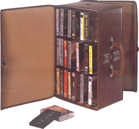 What is a disturbing trend in audiocassette evolution, though, is that it’s becoming increasingly difficult to find suitable storage units for them. Used to be, you could go into a major music store (Tower Records, e.g.) and buy a little suitcase-looking thing that would accommodate 60, 90, even 120 audiocassettes. That’s for lugging around. You could also get a set of drawers for storing a couple of hundred cassettes.