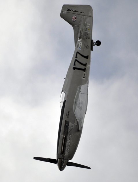 The final shots of the plane diving at 20 degrees from vertical show no sign whatsoever of a pilot’s helmet. As nice as it is to think that the pilot might have pulled on the stick hard at the very last second, the photographic evidence indicates the rear ailerons were already in maximum up all the way through the clockwise inverted roll.