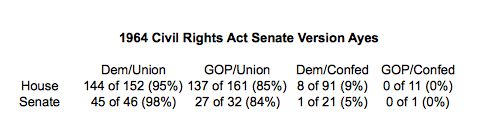 Some republicans say they were the party opposed to slavery, and voted in favor of the civil rights bill. True. But note those stats, NONE of the republicans in the old confederate southern states voted for the civil rights act. It was and is a cesspool of ideas and beliefs, they were pissed at one of their own, a democrat championing the civil rights bill and sought to punish the party by switching to the republican party.