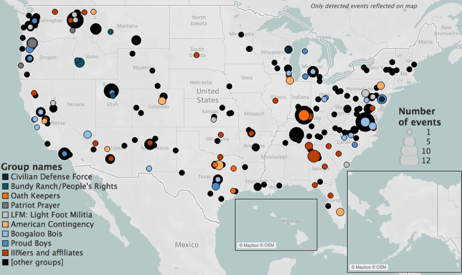 ACLED collects and analyzes information about the actions of state, non-state, and sole perpetrator[1](javascript:void(0)) violence and demonstration activity. MilitiaWatch tracks, documents, and analyzes contemporary US militia movements, and provides reports connecting long-term militia trends to broader political events.