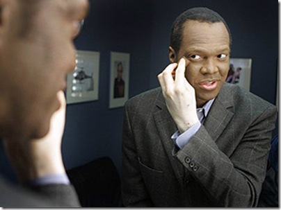 I’ve know 3 or 4 people in my life with actual vitiligo and it really does depigment your skin. It’s a noticable and disfiguring difference even on pale Caucasians, for those who are of naturally darker skin it would be even more prominent. However, it also depigments in a very patchy manner. The use of opaque makeup to even out skin tone is an option. Lee Thomas, a Detroit area TV news anchor, has vitiligo in the typical patchy manner and when on TV he does use makeup to even out his skin tone. this picture shows the effectiveness of make up in contrast to his hand, which is almost entirely without natural pigment at this point.