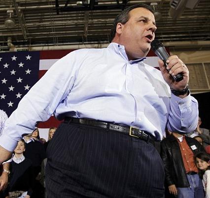 I’m not a defender of Christie, but I’m 90% sure that picture (from 2012) has been photoshopped to make him look fatter. Here’s another shot that appears to be from the same event. Look at the microphone. I think it also looks thinner and taller in this shot than the one in the tweet.