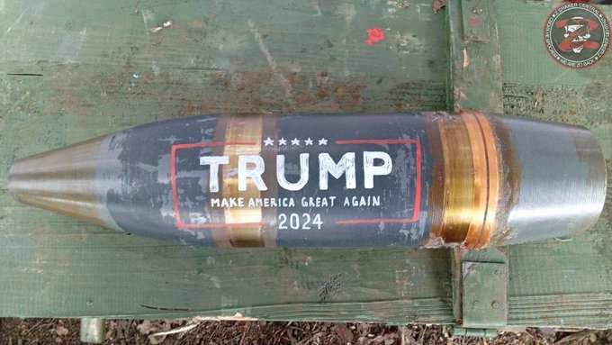 Allegedly, Russian shell destined for Urkaine. Painted for Putin’s puppet.