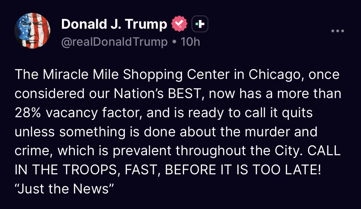 And it doesn’t really ‘own the Libs’ in any discernable way. I mean, it’s not as though Adam Schiff is crying himself to sleep because Donald mistakenly claimed Chicago has a Miracle Mile…