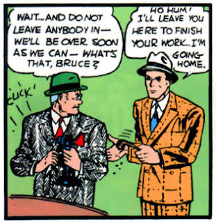 I see what you mean. He’s still recognizable as not Golden Age Bruce Wayne, though, by his nerdy build and brown hair. Bruce always has that blue-black hair seen only in comics and a more athletic build.