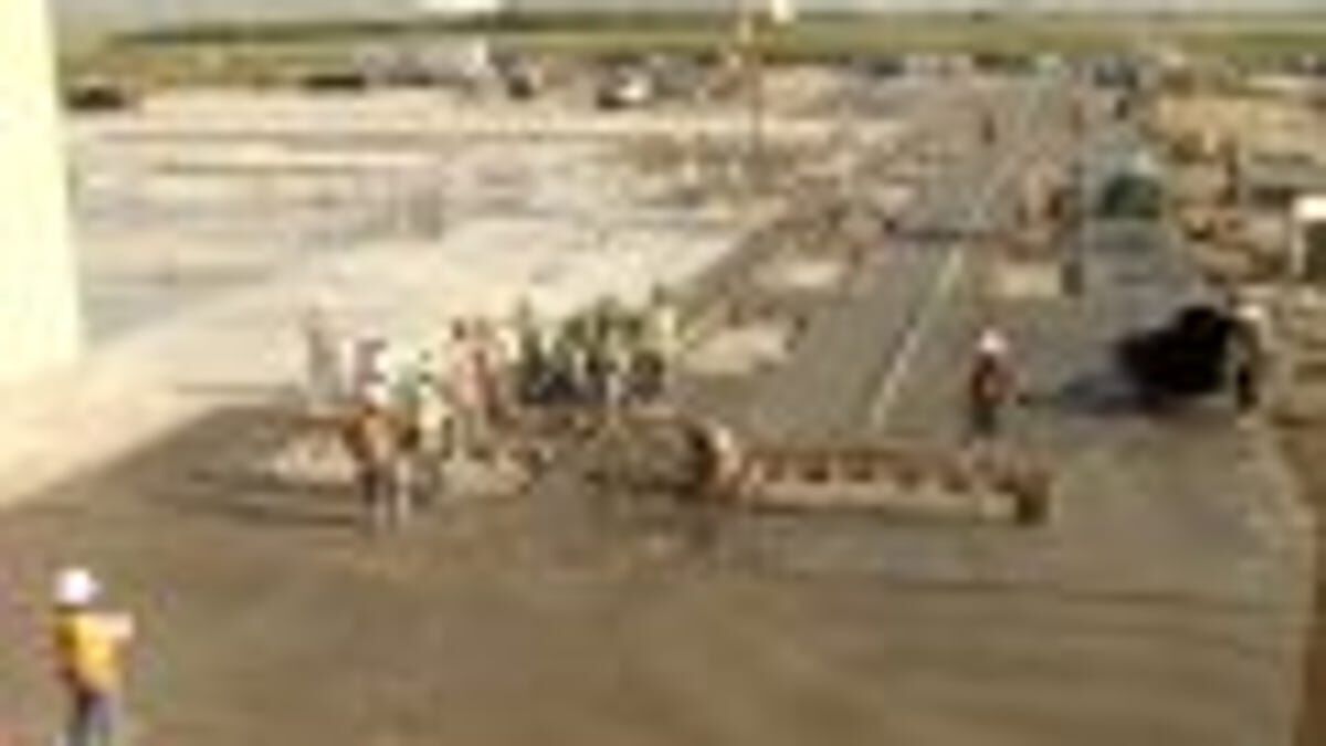 That’s called a “whirlybird” and is used for concrete finishing. It takes some skill to manipulate it, much like a floor buffer, and can get away from you pretty quickly. At least with a buffer, you can just pull the plug. When I was a young man in the Navy, I plugged in a buffer without knowing that the switch on the thing was broken. It nearly destroyed the Chief’s desk before I got it unplugged again.