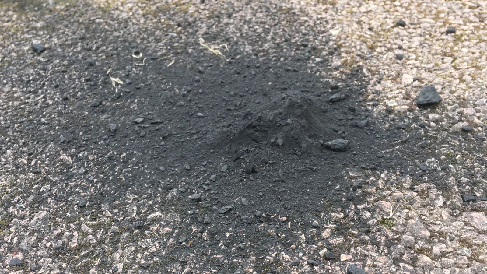 Got a brand spanking new carbonaceous chondrite on the ground. Some interesting shots of how pieces turned to dust when they strike a hard surface. That class of asteroid is basically just dried mud.