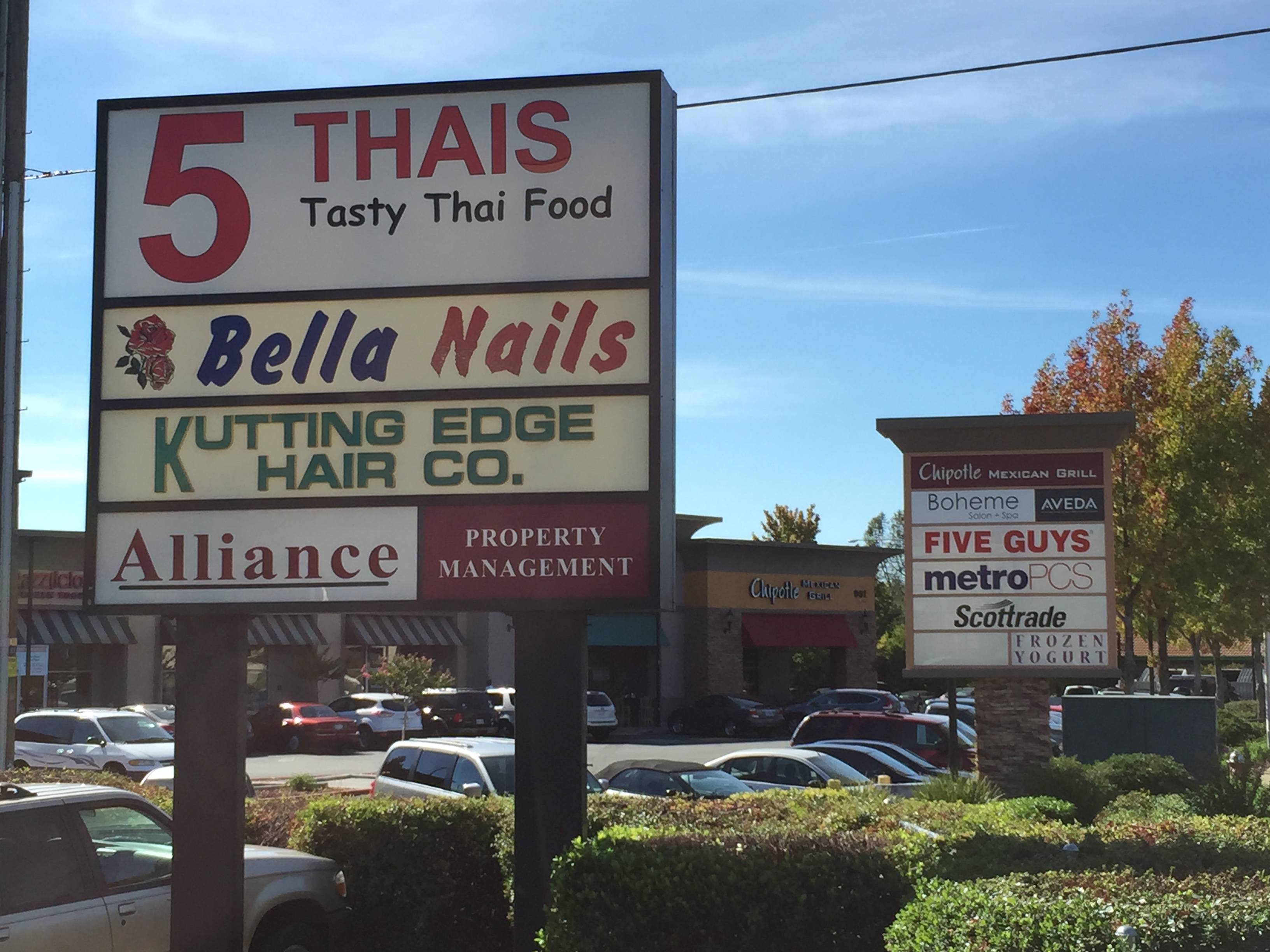 In Redding, California, there used to be a Five Guys (burger chain). A Thai restaurant opened up in the same strip mall and called themselves… Five Thais.