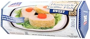 Don’t eat the jarred stuff! Gefilte fish doesn’t have to be slimy. What you really want are the gefilte fish loaves that come frozen, like this or this. You can either boil them with onion and carrots, or bake them with a variety of sauces. If you have a store with kosher frozen foods, they will probably have it.
