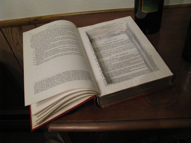 I finally made it through all 700+ pages of the book. It took me two full afternoons and at least 8 hours of solid cutting. I sanded down the interior edges of the cavity and it ended up looking pretty nice. Now I just need to find something to put in it. I also need to find something to do with all of these pages I have sitting on my desk now. Perhaps I can blend it up and make my own paper with it.