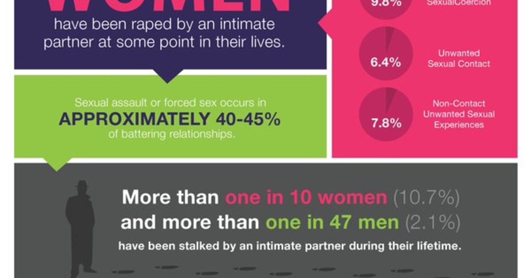 Numerous important facts and statistics related to sexual assault and stalking related to domestic violence, including source citations.