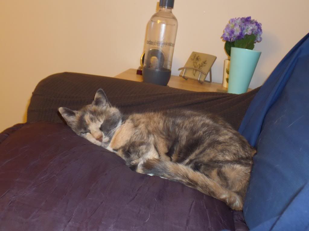Feather sleeping in a weirder position than usual.