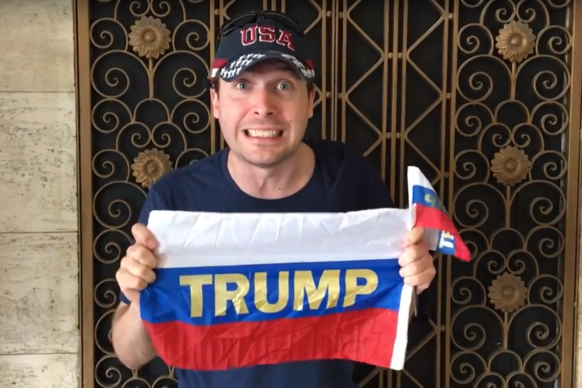 …Mr Charter told Talking Points Memo that the prank went better than expected because no one in the crowd at CPAC recognised the Russian Federation’s flag…