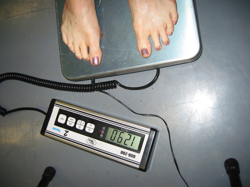 Here’s me at my lowest weight of 129.0 pounds. (and that’s kind of a cheating 129, I knew if you leaned forward the scale read lower) I’m not emaciated in the slightest at 5’5" and I don’t have a particularly small frame.