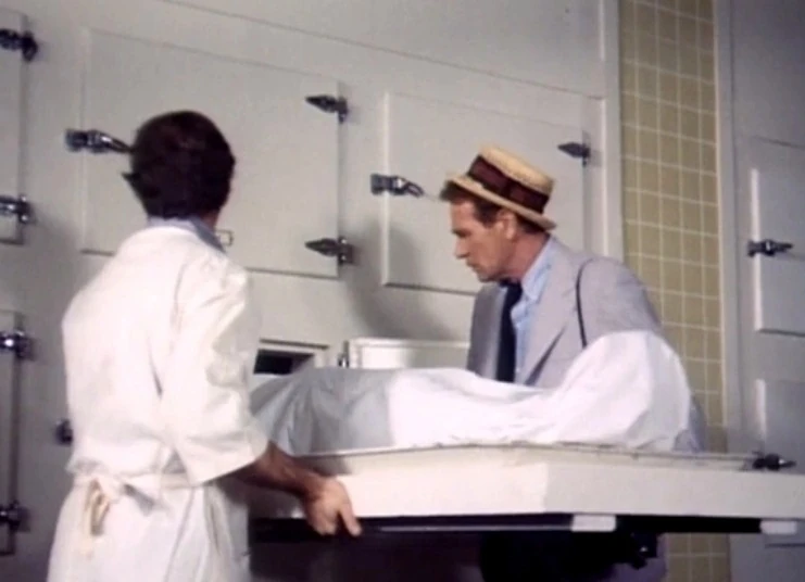 So imagine my surprise when there’s no motorcycle in the entire movie. Instead, a pedestrian in a construction zone bends over while a parked truck’s parking brake is released supernaturally, the truck rolls backwards until it stops abruptly, sending a sheet of glass through a dummy’s throat. (What was so shocking in 1976 that it almost got the film an X-rating looks kinda goofy today and was considerably less gory than a typical X-files revival episode)