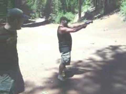 Here’s another video that shows how an oversized handgun moves when fired. It’s definitely not a kid shooting it. The point is just to watch how the handgun moves (up and back).