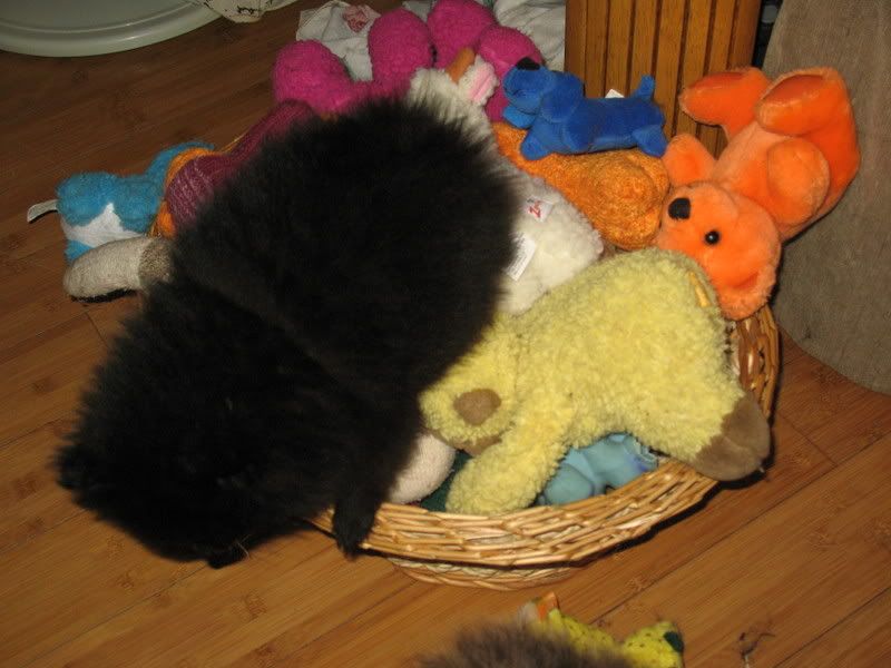 Puppies outside getting into mischief. Then back in the house being cute and playing I can haz all the tois!