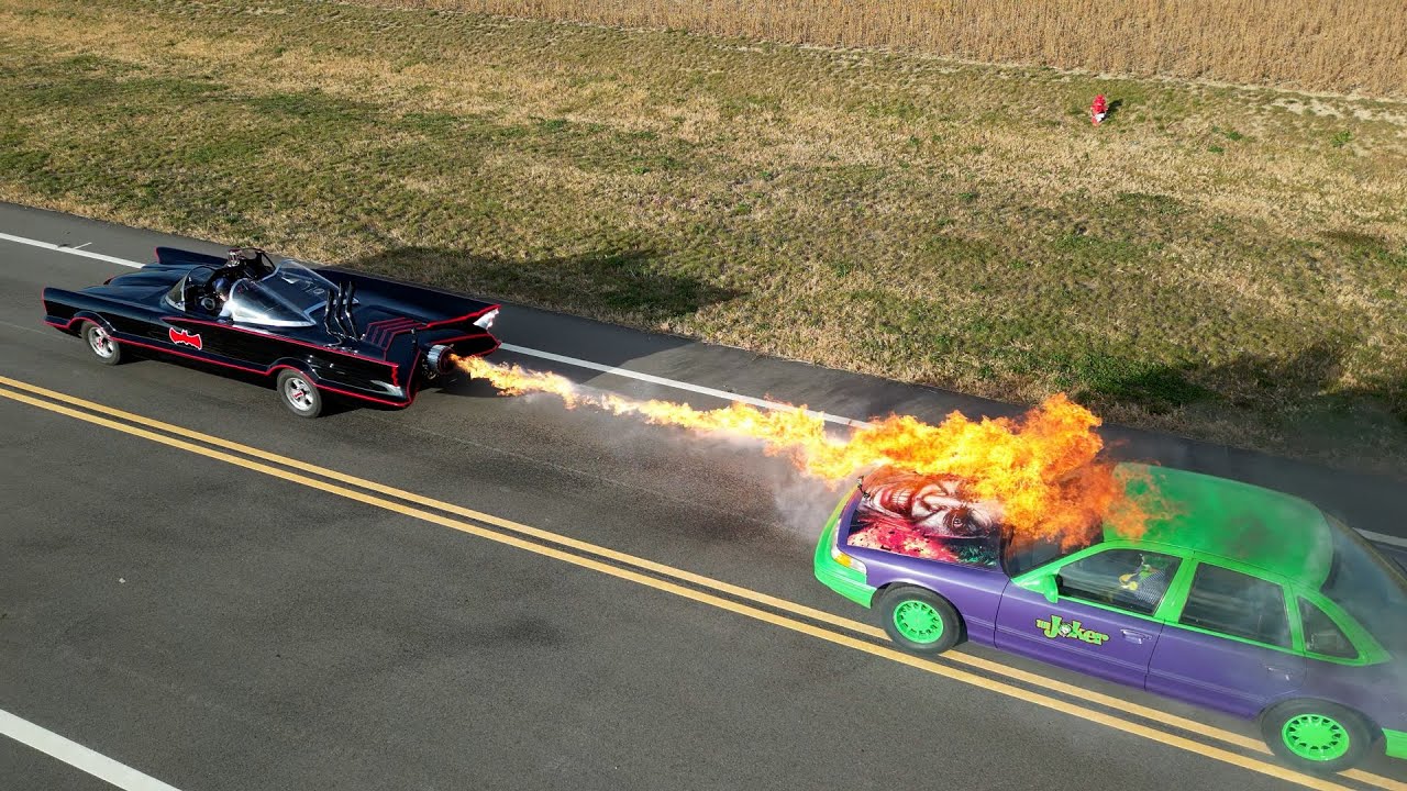 Here’s another video of the car in action against the Joker’s “Clown Victoria”: