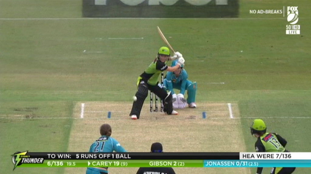 The First came down to the Sydney Thunder needing 5 to win off last ball but the Brisbane Heat took the catch on the boundary