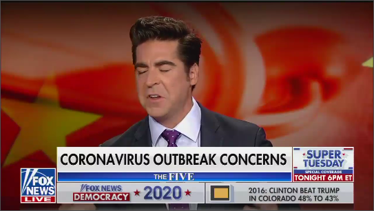 Not Fox-related, but locally a random Chinese person walking down the street was assaulted by someone demanding that he keep his filthy coronavirus out of our country (or words to that effect). Because apparently if you’re afraid that someone is infected, the best thing to do is to punch them in the face and get their blood all over you.