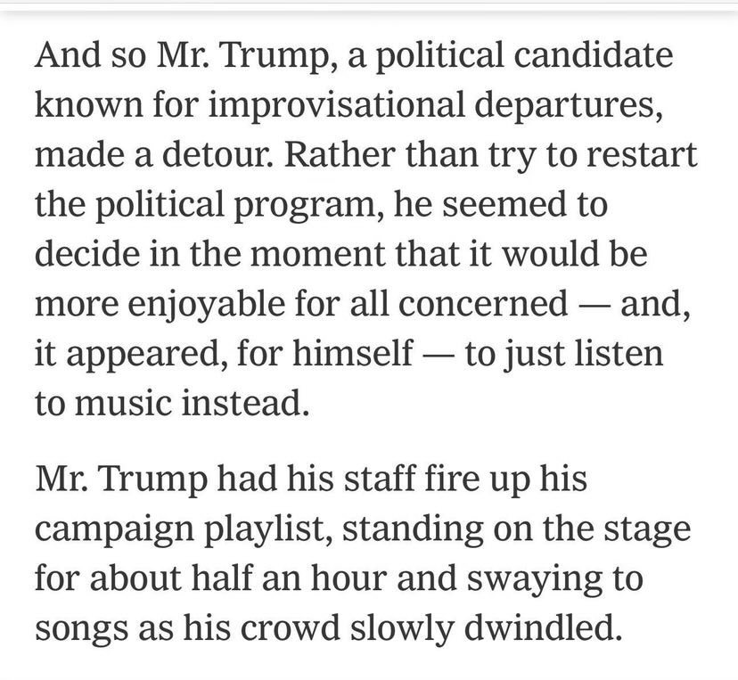 Describing an obviously senile presidential candidate stopping an interview to stand in silence as music played for THIRTY MINUTES as calculated improvisation that would be more enjoyable for all involved!?! Seriously there is no explanation for that kind of coverage than the people ultimately calling the shots at the NYT want Trump to be the next POTUS.