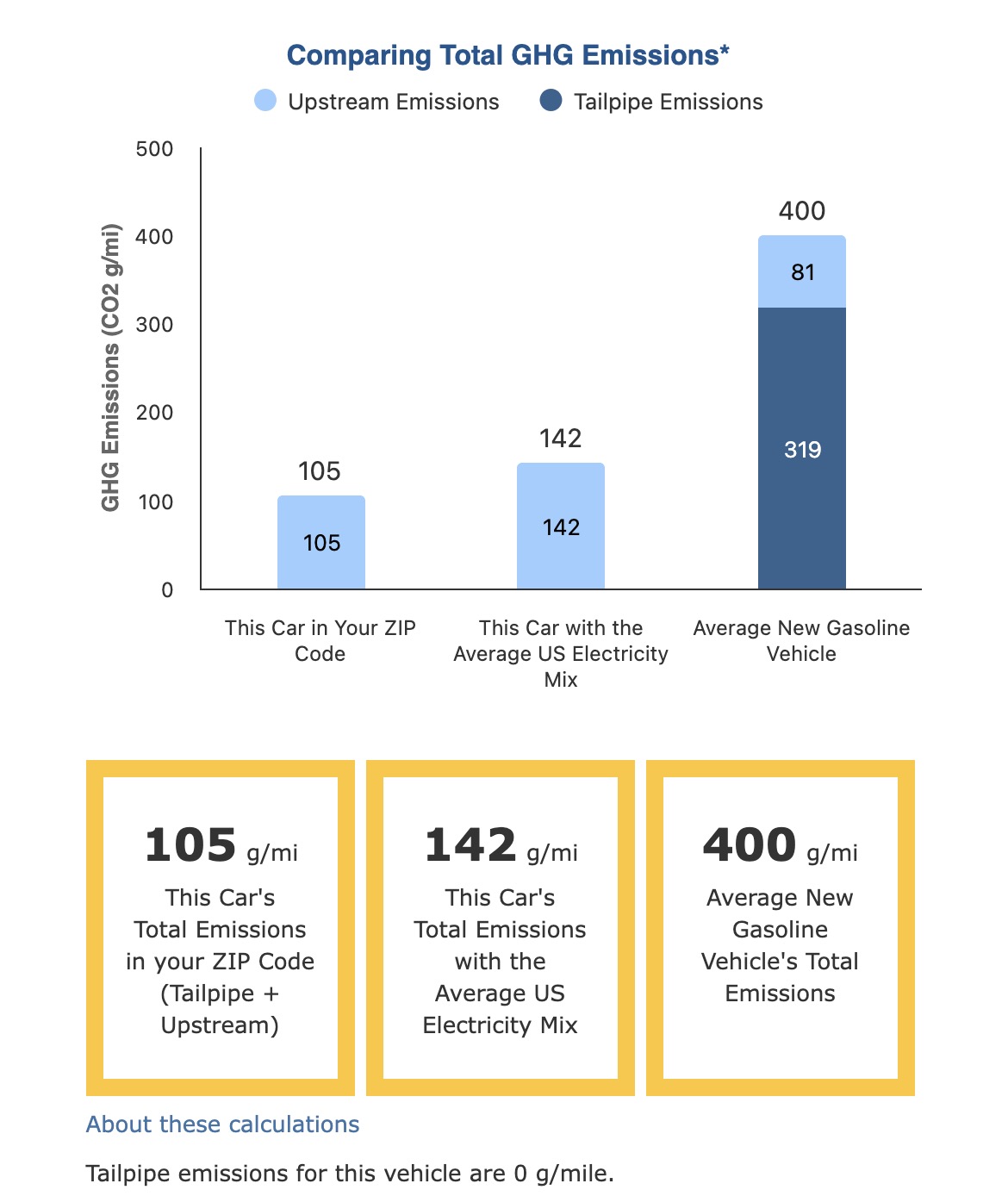 Also, the EPA has (for now) an interactive calculator for estimating your specific car’s emissions based on where you live: