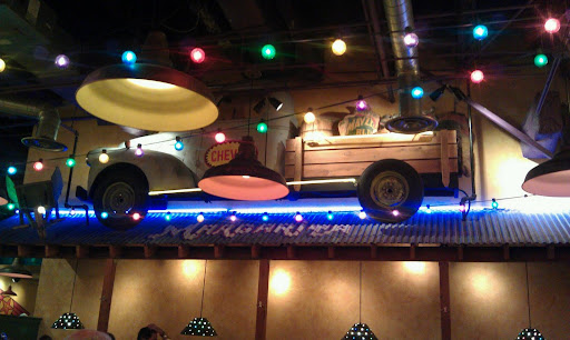 back in the early /mid 80’s I opened new units for TGI Fridays…the theme then was called “Elegant Clutter” They had a Team and warehouse in KY that collected and cleaned the crap and a team of designers that “arraigned” it…they used all kinds of stuff in those days including real stuffed animals. back then each store typically also had hanging a real used racing shell (think rowing). I still go into one I opened in St Louis in 1985…the racing Shell is still there but the dead animals are gone.